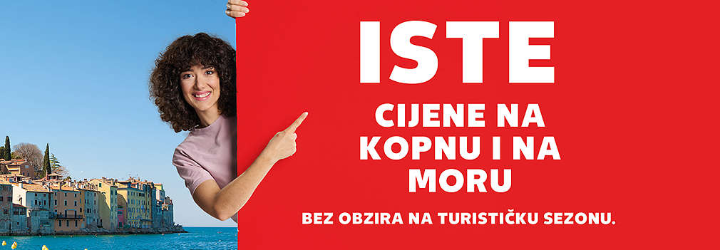 Ponuda vrijedi do datuma navedenog u zaglavlju stranice odnosno do prodaje zaliha. Ukoliko period ponude uključuje nedjelju, ista se odnosi samo u trgovinama koje su nedjeljom otvorene.