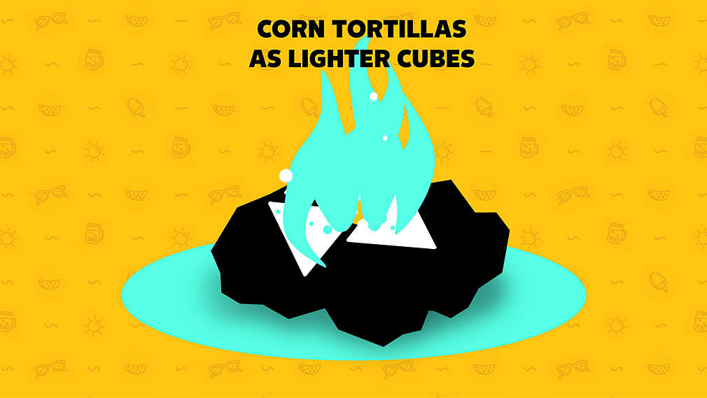 Tortilje so lahko zelo vroče. Česar mnogi ne vedo: z njimi lahko tudi zakuriš žar! Uporabi jih kot običajne kocke za vžig in hitro segrej oglje.
