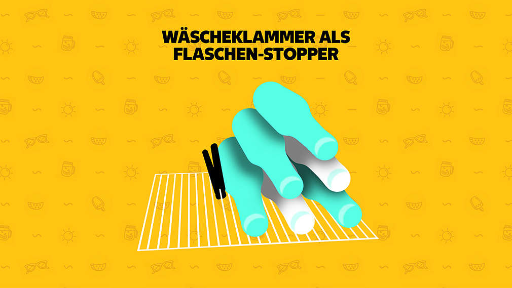 Wegrollende Flaschen im Kühlschrank sind jetzt passé: Einfach Wäscheklammern an der Gitterablage anbringen – fertig ist die Wegrollsperre.