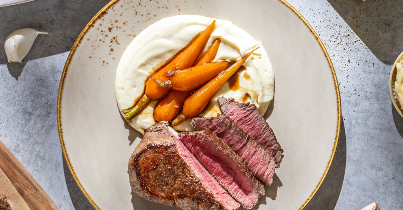 Biftek s kremom od pastrnjaka i glaziranim mrkvama