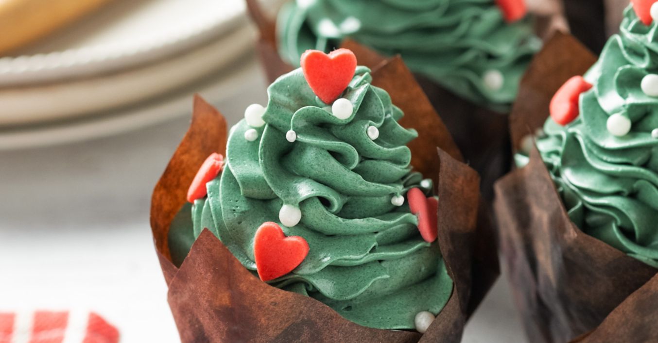 Nakon što se krema stisne, dodaj zelenu prehrambenu boju i miksaj dok krema ne postane glatka. Kremu stavi u vrećicu za ukrašavanje i ukrasi kolačiće da izgledaju kao božićno drvce.