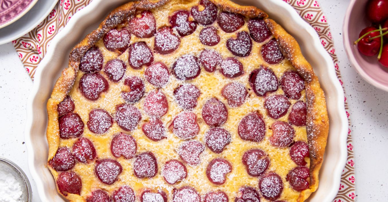U pekač posloži očišćene trešnje pa preko njih prelij smjesu. Stavi peći 18 do 22 minute u prethodno zagrijanu pećnicu.