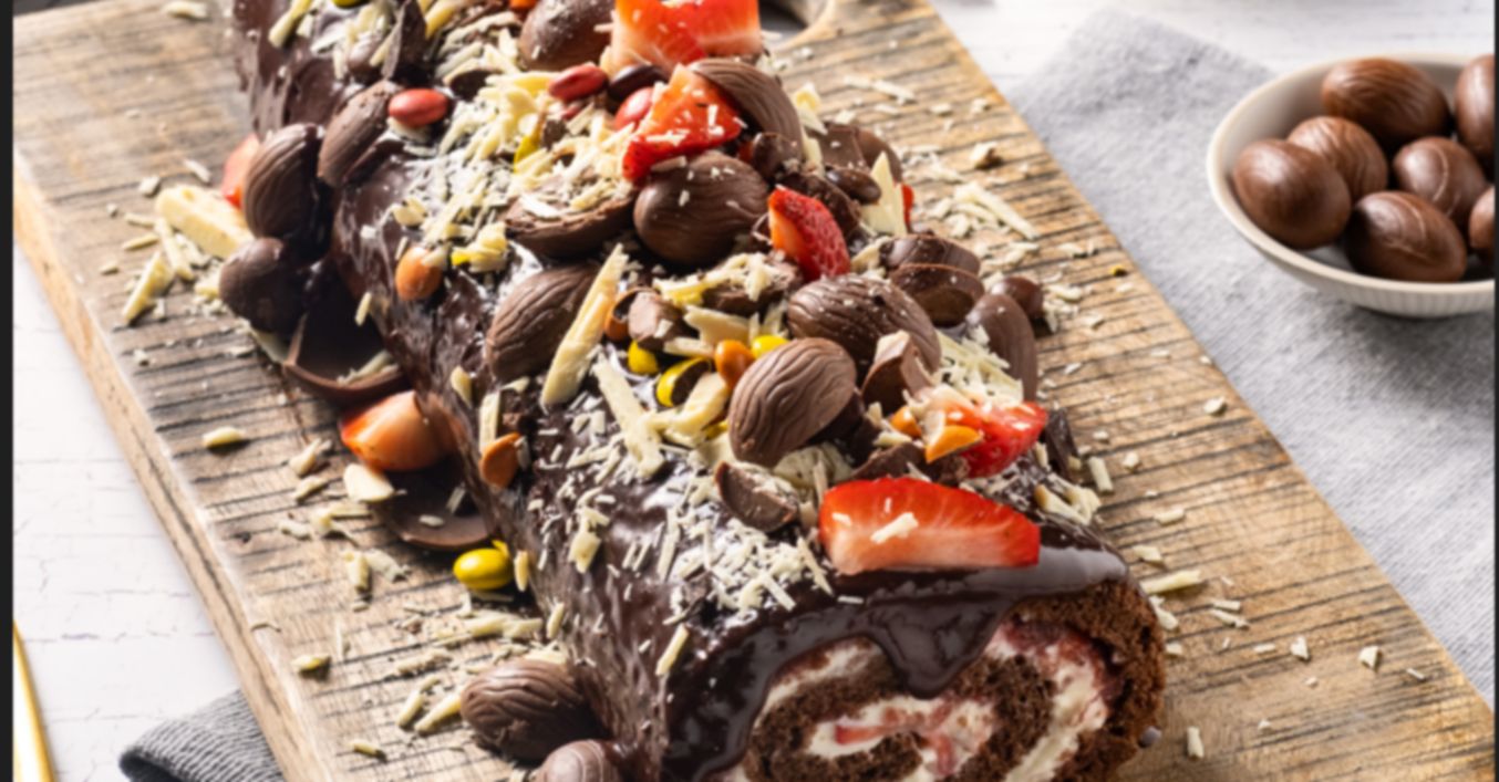 Ohlađeni biskvit premazati džemom maline, zatim mousseom. Jagode narezati na ploške i rasporediti na kremi.Sve zarolati u roladu i ostaviti par sati u hladnjaku da se stisne.Ukrasiti čoko ganacheom i čoko jajima.