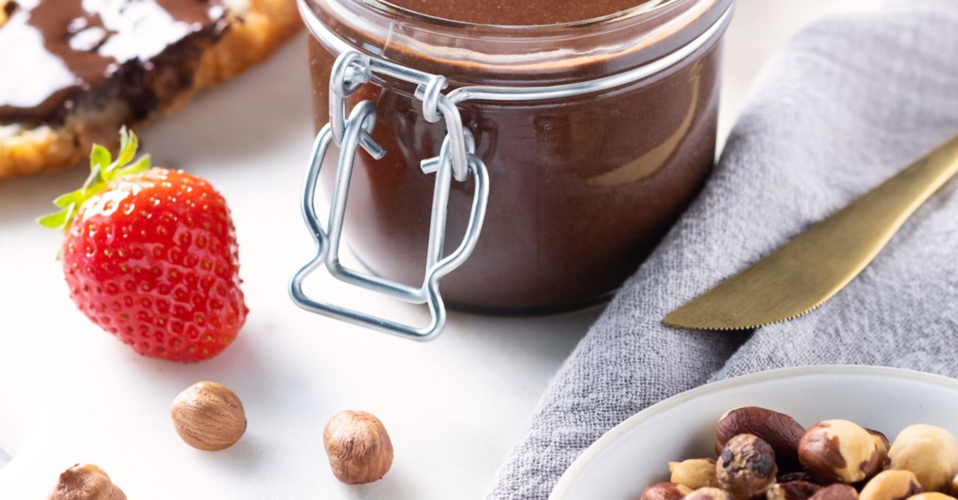 Lješnjake stavi u multipraktik ili jači blender. Miksaj ih dok ne dobiješ gustu tekućinu. Uz pomoć špatule, povremeno sastruži lješnjake s bočnih stranica posude. Potom dodaj šećer u prahu i kakao te miksaj dok se sastojci ne sjedine.