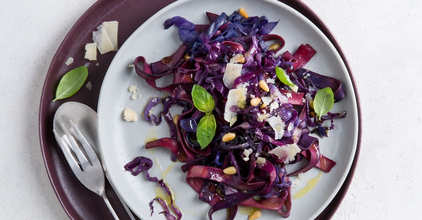 Tjesteninu skuhaj prema uputama s pakiranja pa pet minuta prije kraja dodaj i trakice crvenog kupusa. Dobro ocijedi i isperi pod mlazom hladne vode.