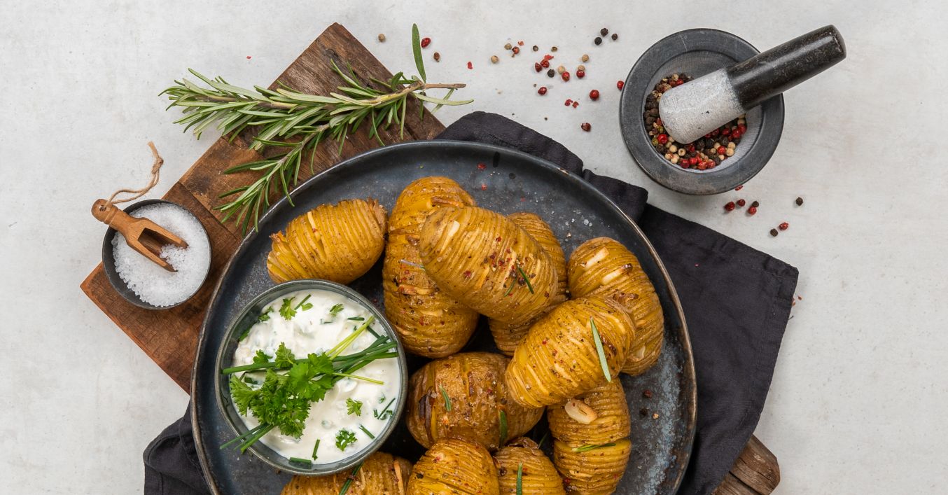 otove krumpire peci u pećnici 40 – 45 minuta. Ukrasi svježim ružmarinom i posluži uz kiselo vrhnje ili guacamole.