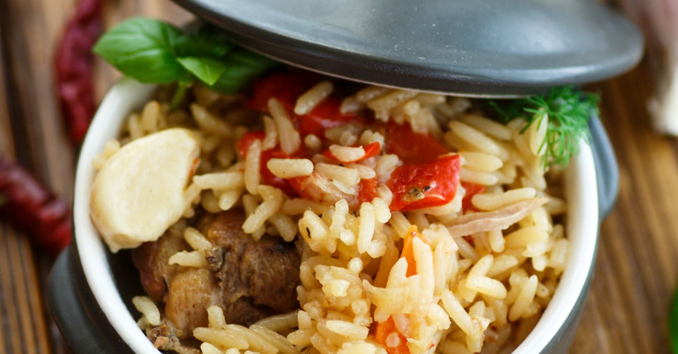 Pirjajte pet minuta i potom zalijte dvjema šalicama vruće vode. Lagano kuhajte 45 minuta, a zatim ubacite rižu, žličicu soli i ako želite, ljutu papričicu. Dodajte četiri šalice vode, prokuhajte, pa smanjite i kuhajte još desetak minuta (dok tekućina ne ispari).