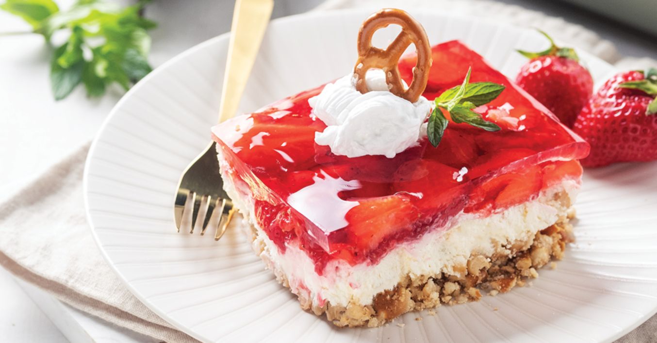 Kolač nareži pa ukrasi šlagom, perecima, svježim listićima mente ili svježim jagodama, prema želji.