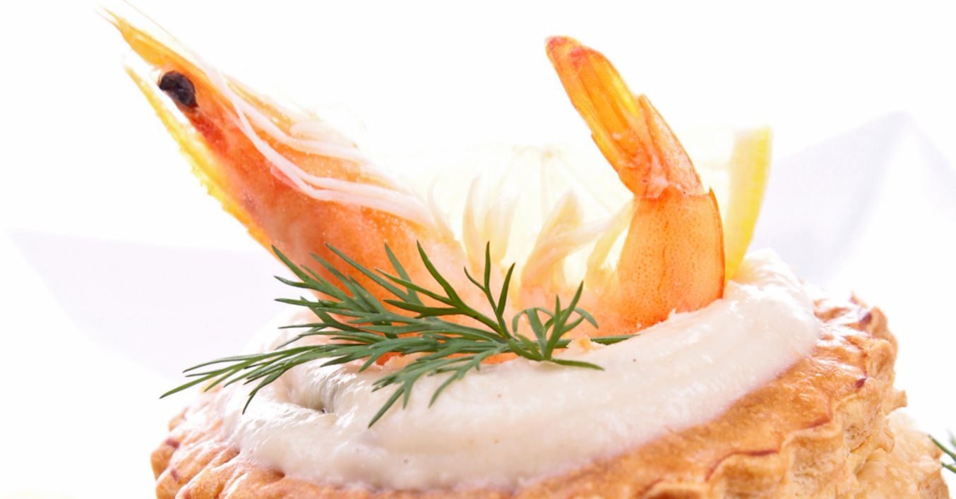 Izvadite košarice iz pećnice i na svaku istisnite malo paštete od tune, začinite paprom te ukrasite koprom i pečenom kozicom. Poslužite uz krišku limuna.