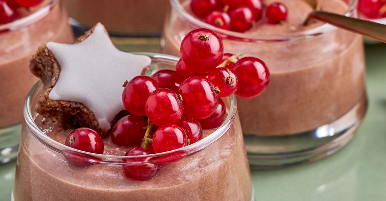 Izvadi kremu za medenjake iz hladnjaka i posluži je uz zvjezdice od cimeta. Desert možeš po želji ukrasiti ribizlom.