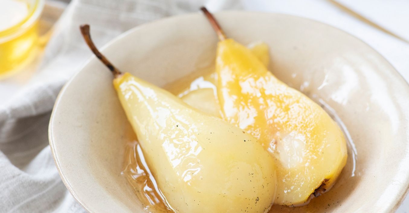 Kruške posluži u dubokom tanjuru ili zdjelici, prelivene sirupom.