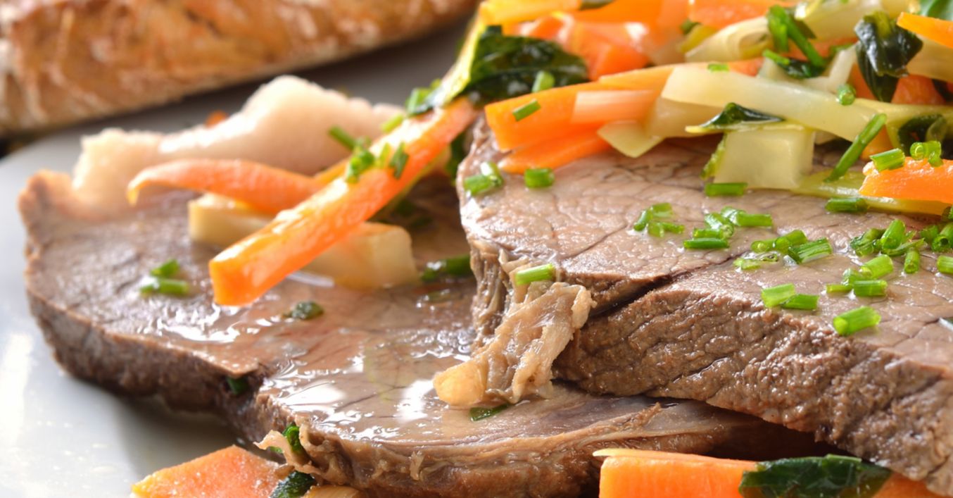 Gotovu junetinu narežite na šnite te poslužite uz kuhano povrće, usitnjen peršin i vlasac te nekoliko kapi maslinova ulja.
