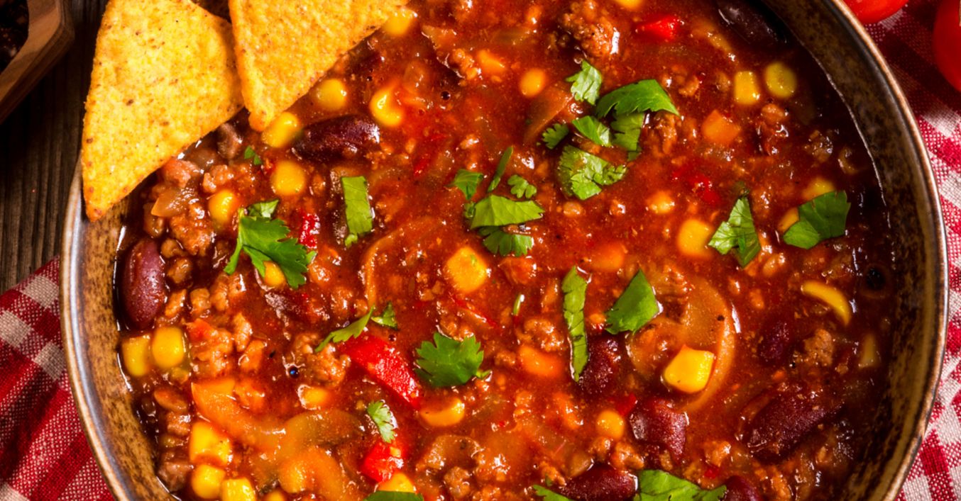 Dodajte omekšalo povrće, češnjak, svježu papriku, kukuruz, čili papričicu i sve začine. Pirjajte oko 5 minuta na srednje jakoj vatri. Dodajte rajčicu a nakon 5 minuta i temeljac. Kad sve zakuha smanjite vatru i kuhajte oko 40 minuta ili dok se sve malo ne zgusne.