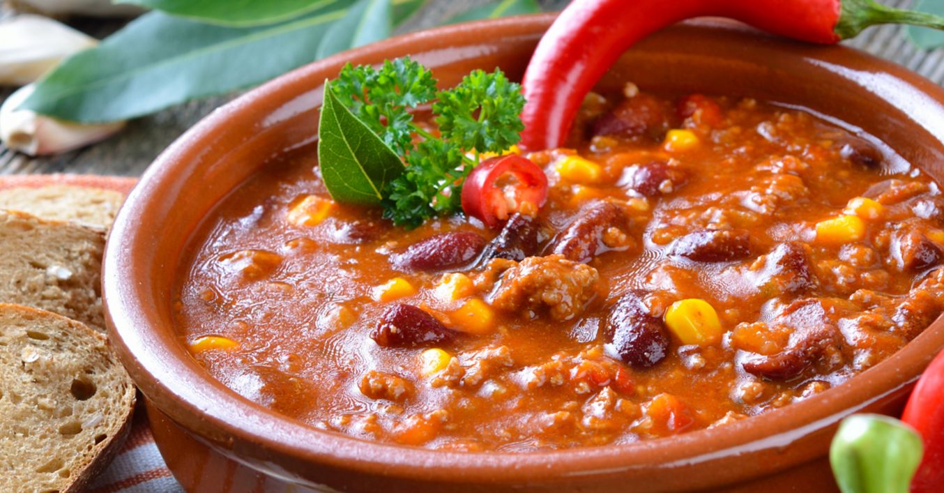 Ubacite usitnjenu rajčicu, sol, papar, čili papričice, koncentrat rajčice i 4-5 dl tople vode. Kuhajte 20-25 minuta uz povremeno miješanje pa dodajte grah i kukuruz.