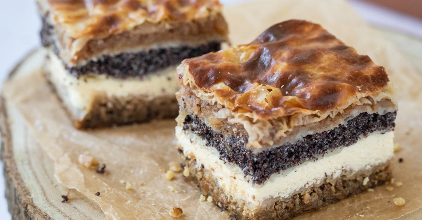 Pleh za pečenje dimenzija 30x25 cm premaži otopljenim maslacem. Na dno položi presavijenu koru za savijače i premaži je maslacem. Na nju stavi nadjev od oraha potom presavinutu koru premazanu maslacem. Redom dalje ide: nadjev od sira, 2 kore, nadjev od maka, 2 kore, nadjev od jabuka, 2 kore premazane kiselim vrhnjem.