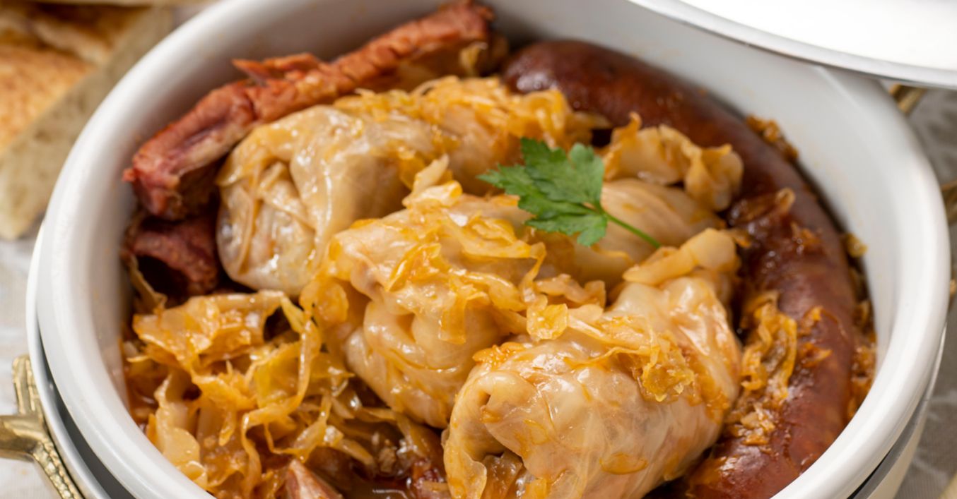 Listove kupusa lagano odvojimo i properemo u hladnoj vodi da sarma ne bi bila previše kisela. Na listove položimo žlicu smjese od mesa pa listove savijemo a krajeve utisnemo prema nadjevu.