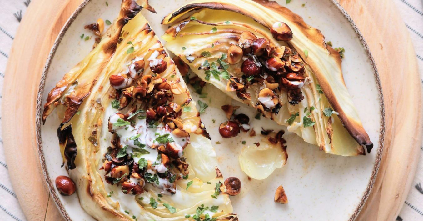 Pečeni kupus izvadi iz pećnice, posipaj ga pripremljenim maslacem s lješnjacima pa sve vrati u pećnicu na 10 minuta.