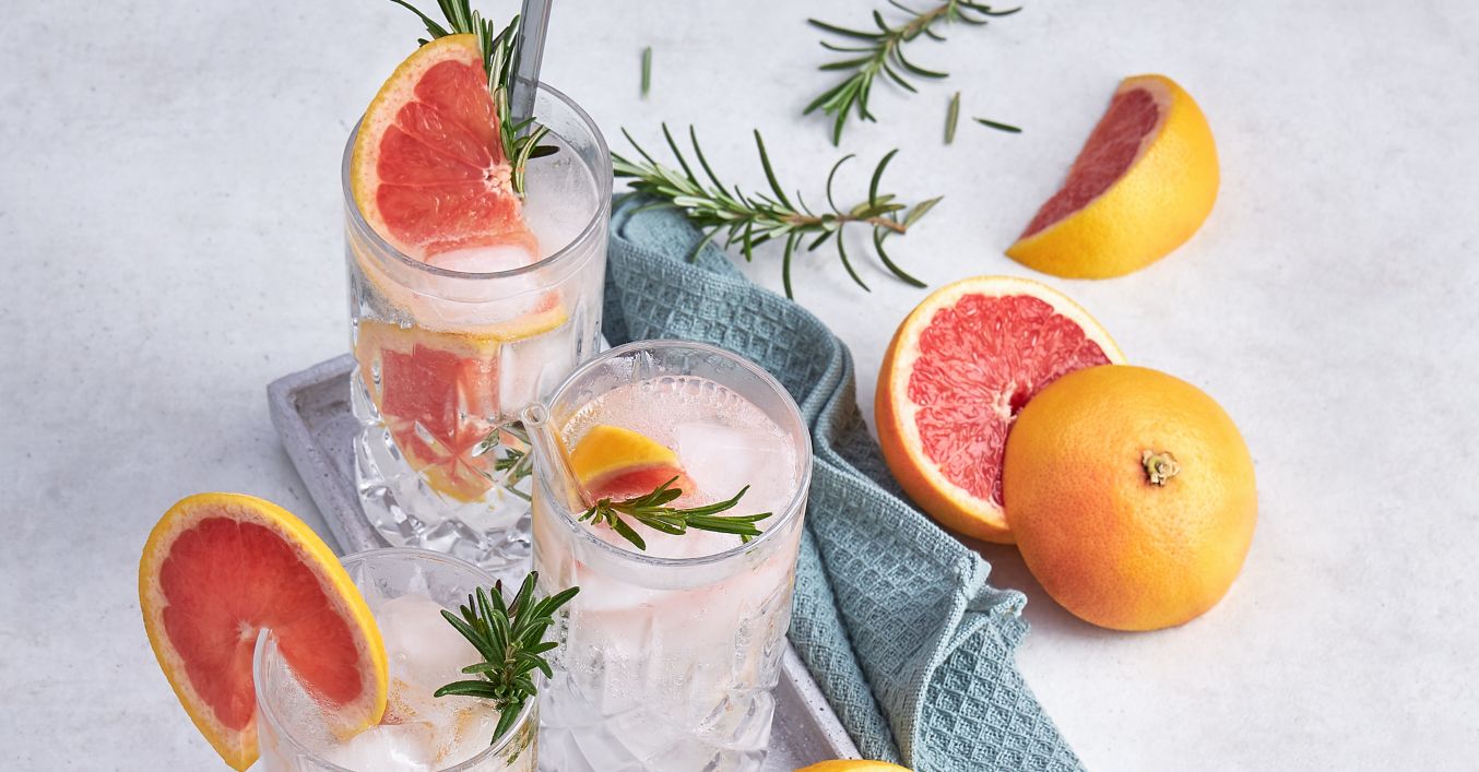 U čaše stavi ploške grejpa, led i votku, dolij mineralnu vodu te ukrasi ružmarinom.