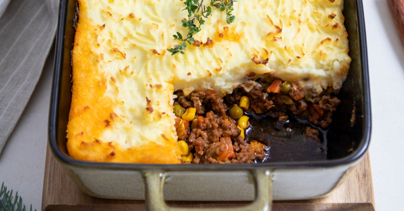 Naulji posudu za pečenje. Rasporedi nadjev pa preko njega pire krumpir. Peci na 190°C oko 45 minuta. Pusti da se ohladi 10-15 minuta prije posluživanja.