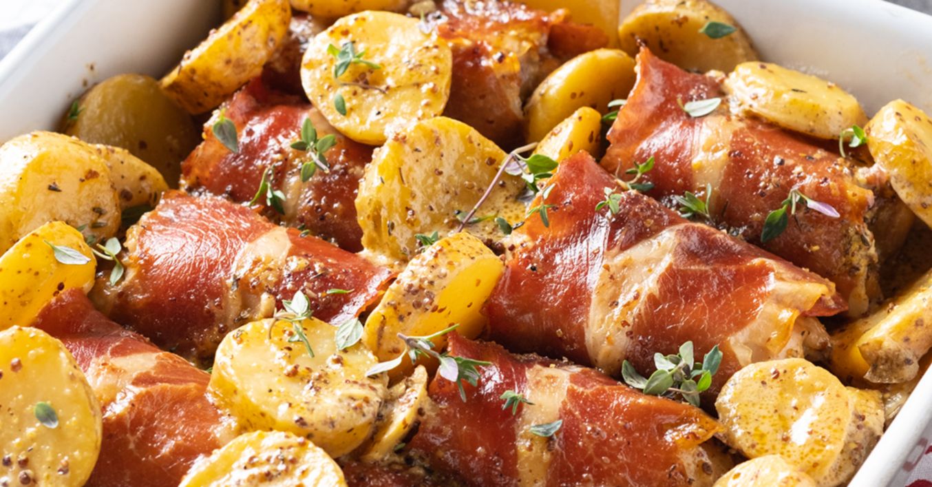 Zatim ulij vrhnje, umiješaj senf pa zalij sve temeljcem. Pusti da se krčka nekoliko minuta pa u tavu vrati pileće rolice te ih smjesti između krumpira.