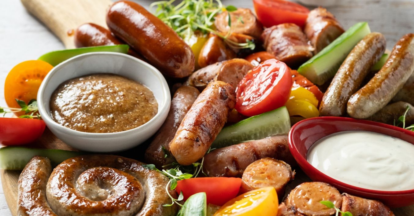 Plata s raznim vrstama kobasica, umacima i povrćem