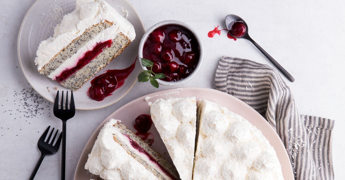 Premaži biskvit kompotom od višanja, no ostavi 2 cm od ruba, kako se ne bi prelio.