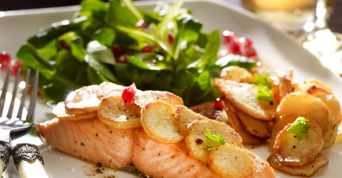Ostatak krumpira poprži na dvije žlice vrućeg ulja. Nar prepolovi, pa jednu polovicu očisti, a iz druge iscijedi sok. Pomiješaj ostatak ulja, ocat, med i sok od nara, dodaj sol i papar. Napravi salatu od matovilca i sjemenki nara te začini pripremljenim preljevom. Posluži sve zajedno i uživaj u okusima!