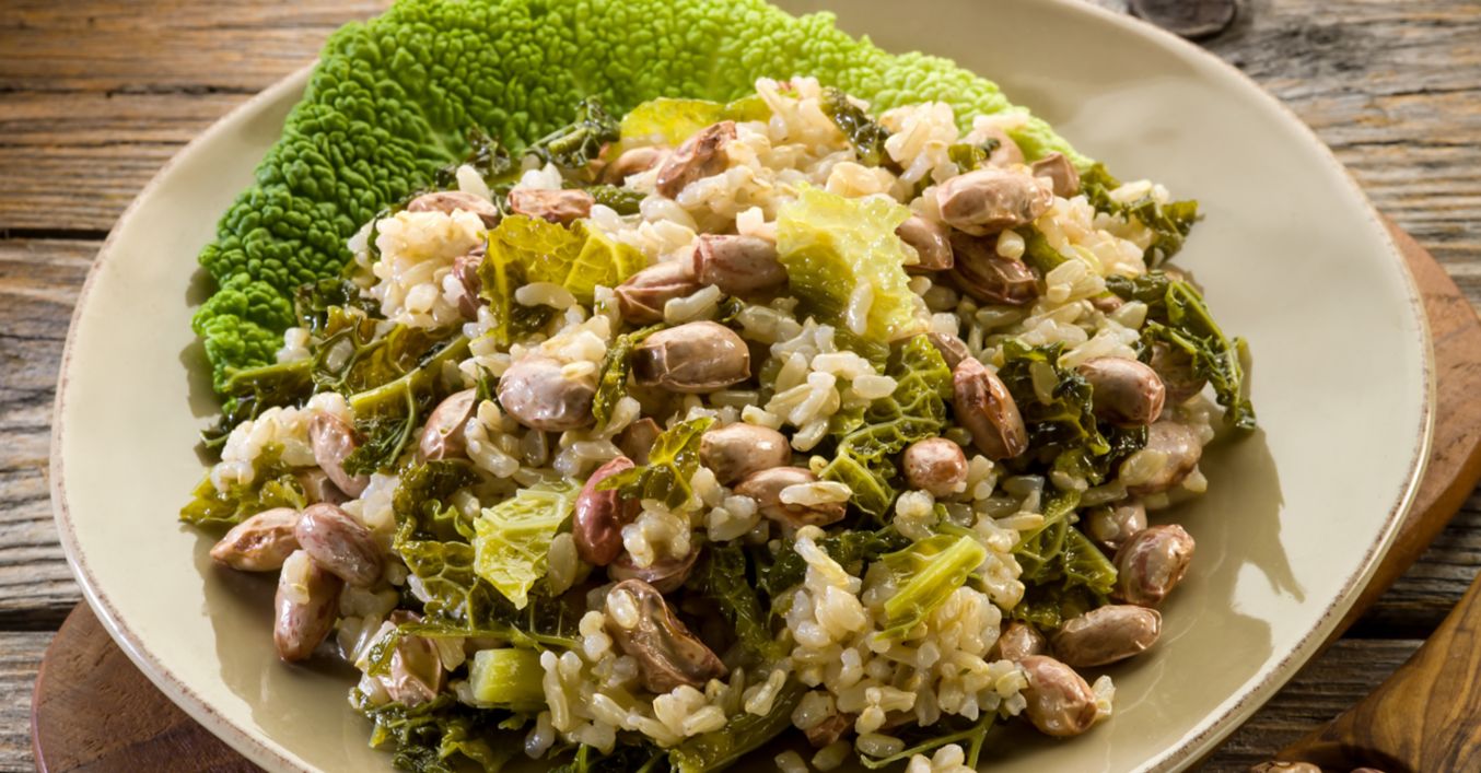 Grah namočite preko noći u vodi. Sutradan ga ocijedite, dobro isperite i kuhajte 45 minuta u ekspres-loncu. Operite listove kelja i narežite ih na trakice.