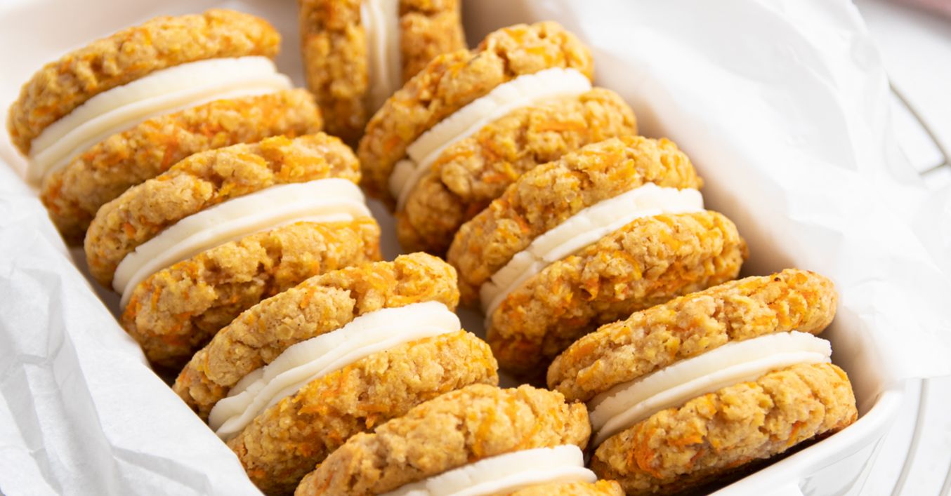Za kremu miksaj omekšani maslac i krem sir dok ne dobiješ glatku kremu. Umiješaj šećer u prahu pa dodaj aromu vanilije i vrhnje za šlag. Prebaci u dresir vrećicu i rasporedi u debljem sloju po ohlađenim keksićima, u obliku sendviča.