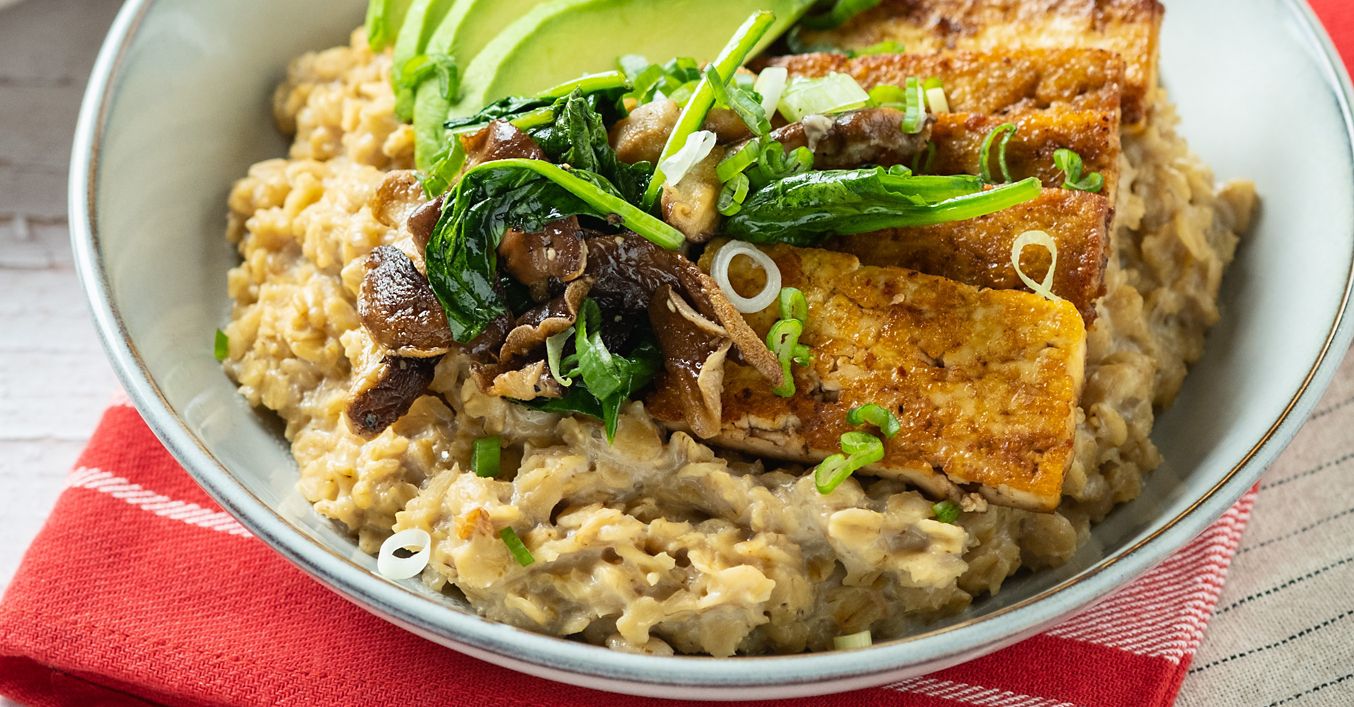 Slana zobena kaša s tofuom, špinatom i gljivama