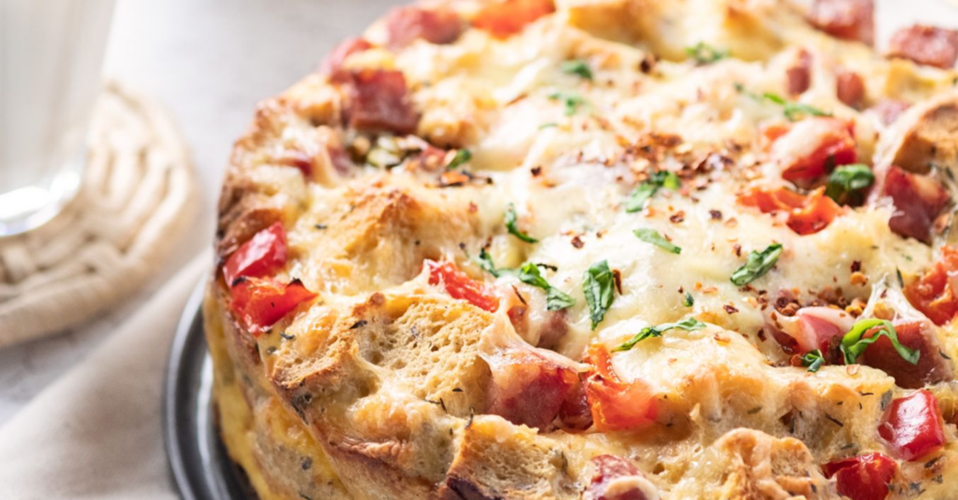 Složenac posluži uz svježu salatu i čašu jogurta ili mlijeka. U njega možeš staviti i druge sastojke prema želji, jer je idealno jelo za potrošiti ostatke iz hladnjaka.