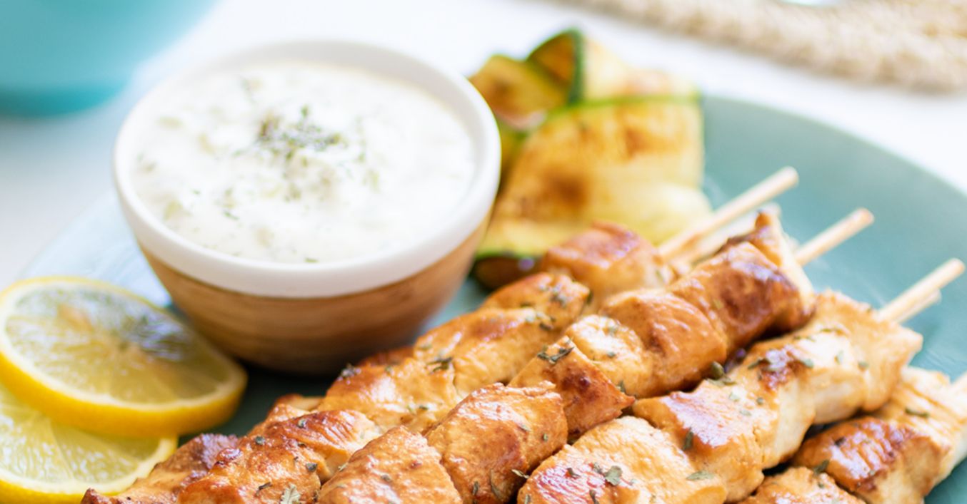 Posluži s tzatziki umakom, grilanim povrćem i lepinjom ili domaćim kruhom po želji.
