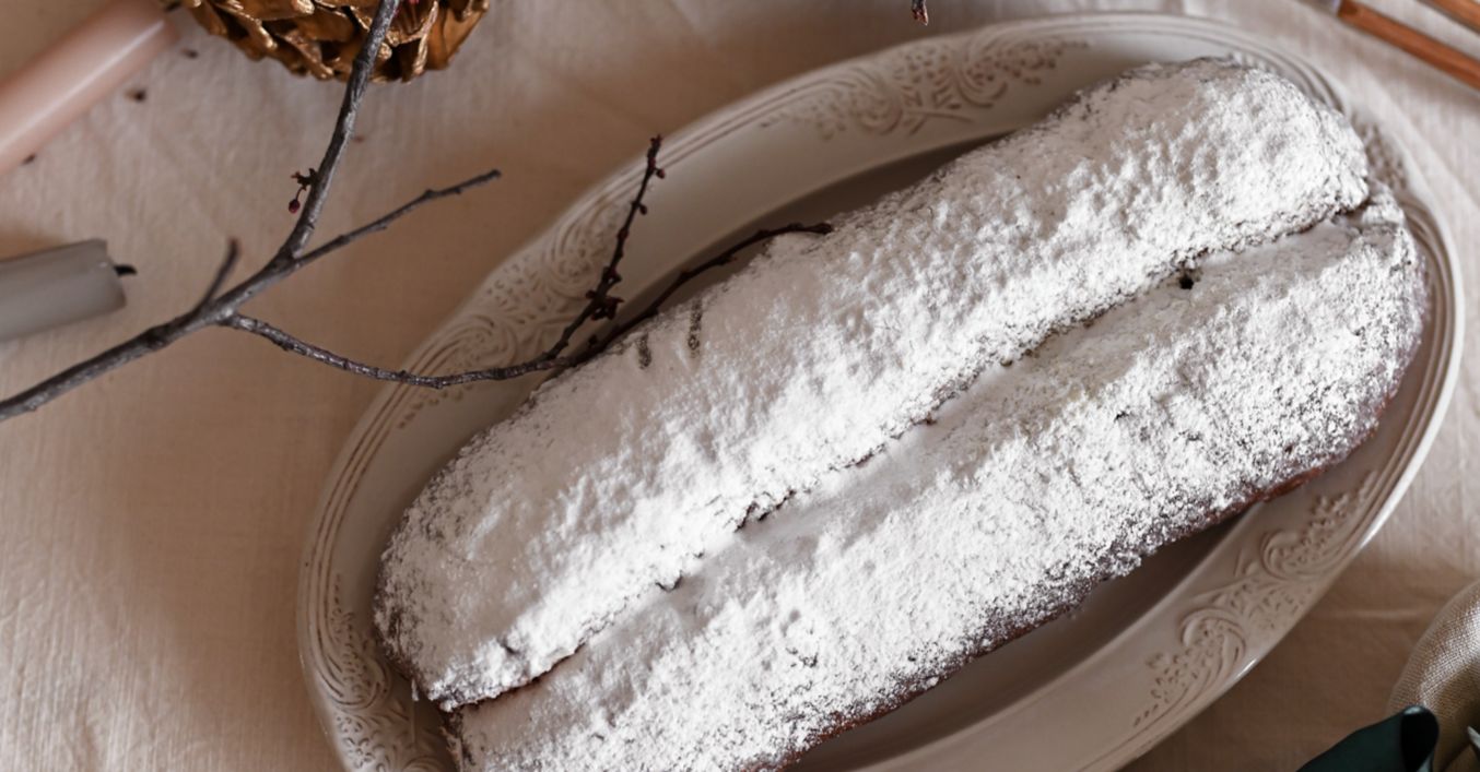 Gotovi Stollen premaži rastopljenim maslacem I pospi šećerom u prahu.
