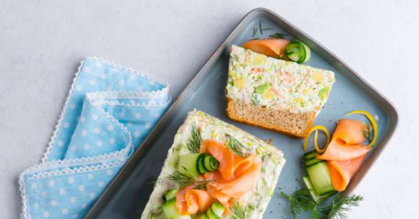 Operi krastavac pa guljačem za povrće napravi tanke trakice. Zarolaj svaku trakicu krastavca, kao i trakice preostalog lososa. Trakicama ukrasi ohlađeni tart, a po želji možeš i posuti s još malo sjeckanog kopra.