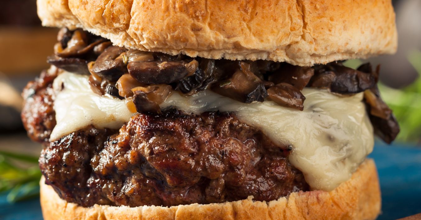Na donju polovicu peciva stavite pljeskavicu s rastopljenim sirom, dodajte pirjane šampinjone i pospite naribanim parmezanom. Poklopite drugom polovicom peciva i poslužite toplo.