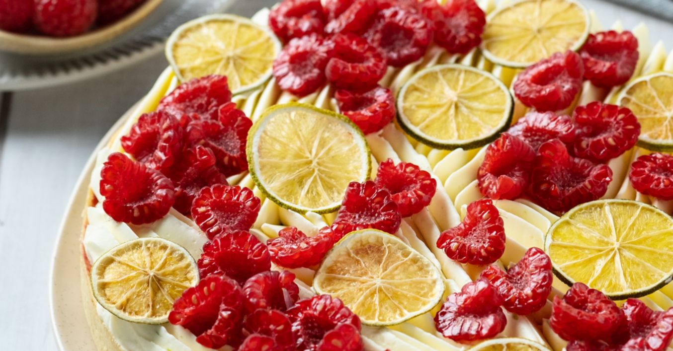 Smiksaj vrhnje i šećer u čvrsti šlag i ukrasi tart. Na kraju možeš dodati svježe maline i dehidriranu limetu.