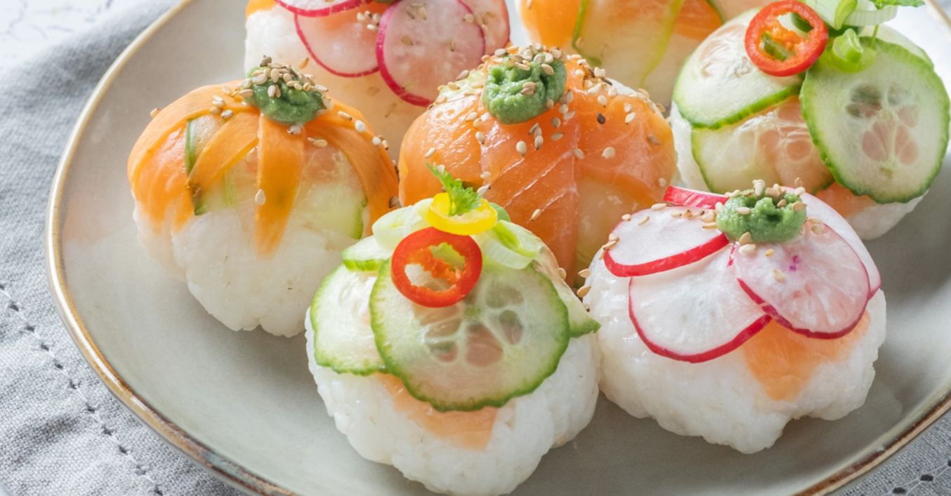Svaku lopticu od riže možeš složiti drugačije i birati različite sastojke i „motive“. Složene loptice stavi na jedan tanjur na kojem ćeš ih poslužiti.