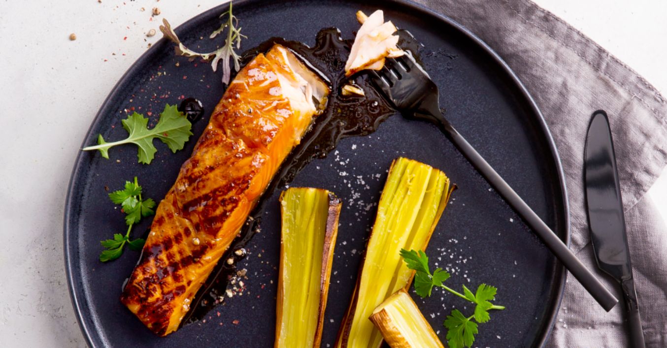 Teriyaki losos s porilukom s roštilja