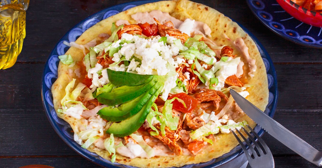 Ispeci tortilje u tavi pa ih napuni pireom od graha, mješavinom piletine i rajčica, salatom, kiselim vrhnjem, feta sirom i avokadom.