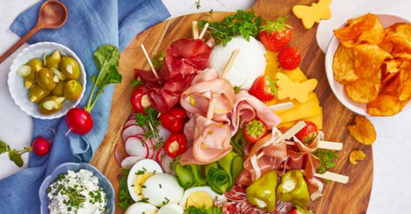 Ocijedi antipasti papričice i mozzarellu. Cheddar nareži na trakice. Naniži šunku i mortadelu na štapiće.