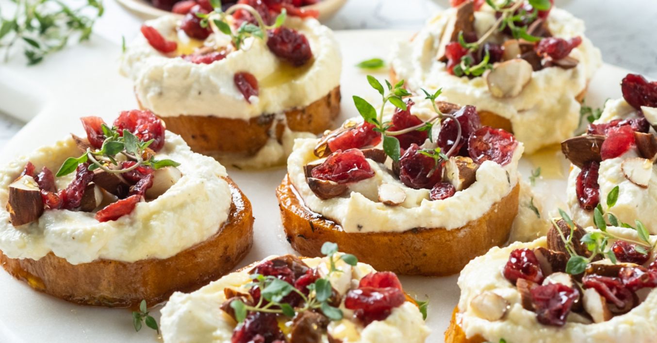 Zalogaji od pečenog batata, mekog slanog sira i brusnica