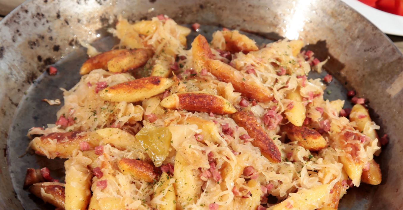 Dodajte kiseli kupus, sol, papar i muškatni oraščić te sve dobro promiješajte. Poslužite toplo i uživajte!