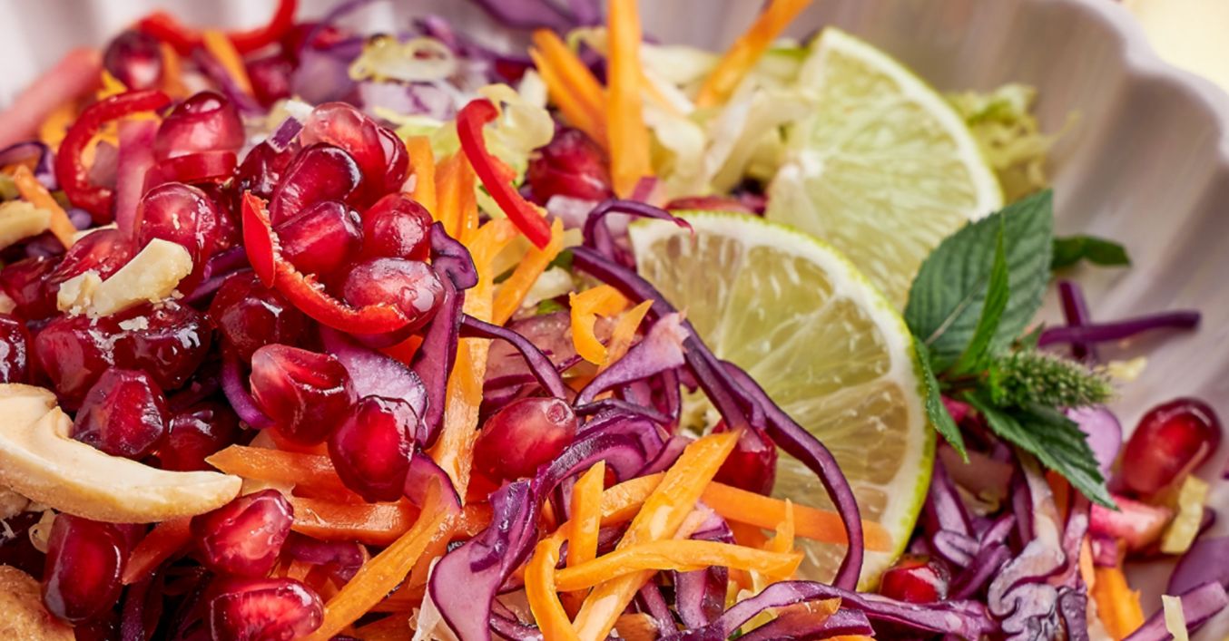 Limetu operi vrućom vodom i osuši, a zatim sitno naribaj 1 žlicu kore limete i iscijedi sok. Pažljivo izvadi sjemenke nara. Pomiješaj jogurt od kokosa s 1 žlicom maslinovog ulja dok ne dobiješ glatku smjesu, a zatim dodaj sol, 1 žličicu korice i soka limete. Pripremi falafel prema uputama na pakiranju.